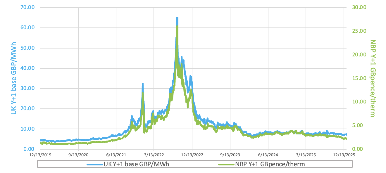 At time of writing, European gas storage levels are 60% full, with the UK 54% full. European gas storage levels are trending around the 5-year average. Over the past week gas has accounted for 24% of the UK generation mix with wind accounting for 42%, solar 1% and nuclear accounting for 12%. Below summarises curve prices as at close of business on Friday.