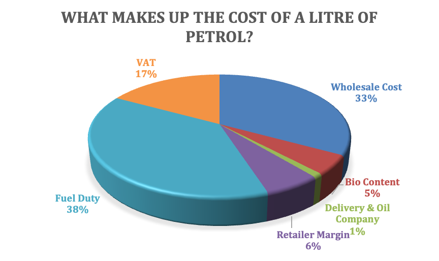 Typical UK petrol prices break down roughly as follows: